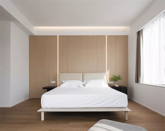 墻面不做過多裝飾,盡量保持干凈簡潔的面貌,巧妙地弱化其存在感。 如果你覺得家里太單調,也可以選擇用一個偏日系的亮色家具來點綴,讓空間充滿生氣。