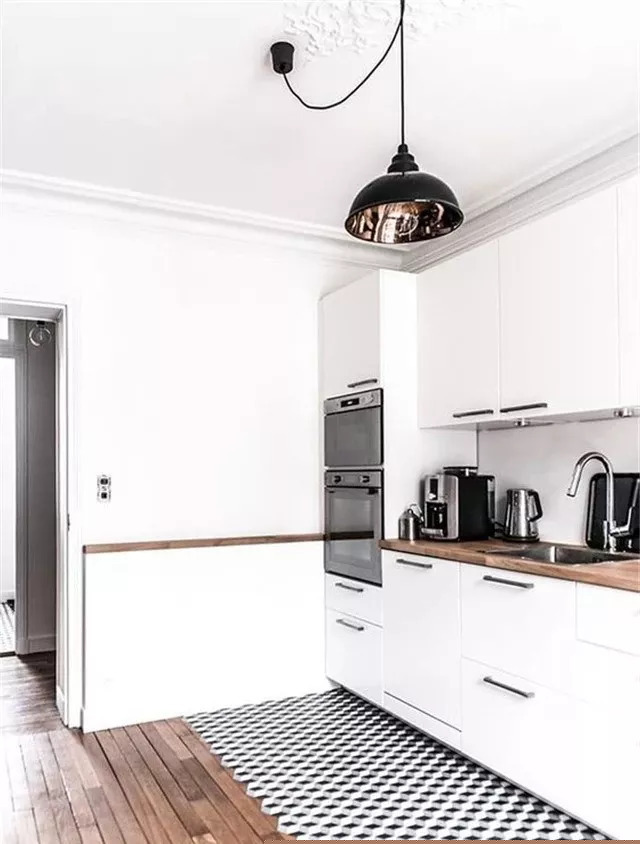 如果家里整體非常亮堂,可以在廚房鋪黑色不規(guī)則地磚,簡(jiǎn)單耐看。