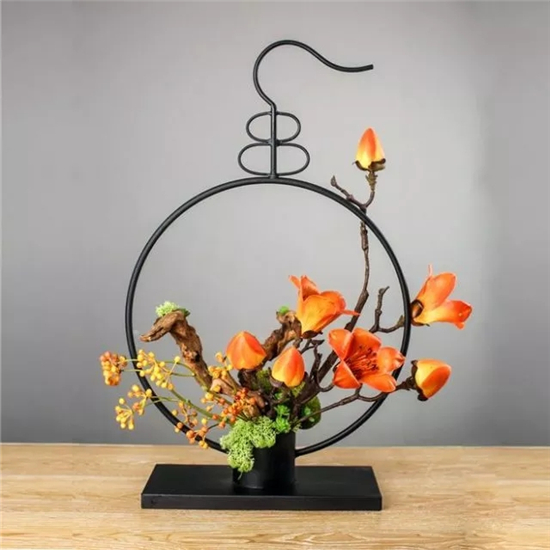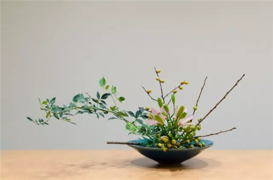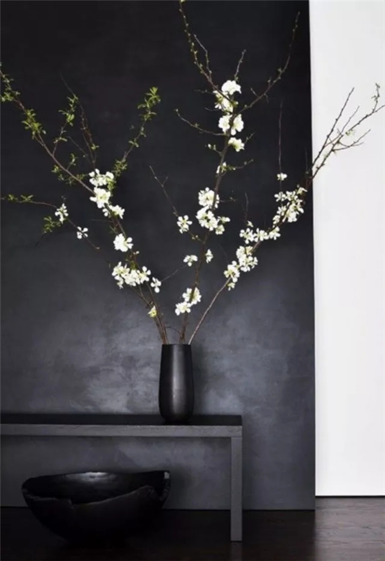 中式、日式或傳統(tǒng)風格的搭配設計應盡量選擇東方式插花,它的特點是:花材的選擇應以簡潔,自然為美,善于利用花材的自然形態(tài)與空間相融合,凸顯意境之美,并較為注重季節(jié)感,選用當季花材。造型多以線條為主,大多為平衡式構圖,以優(yōu)美姿態(tài)取勝。