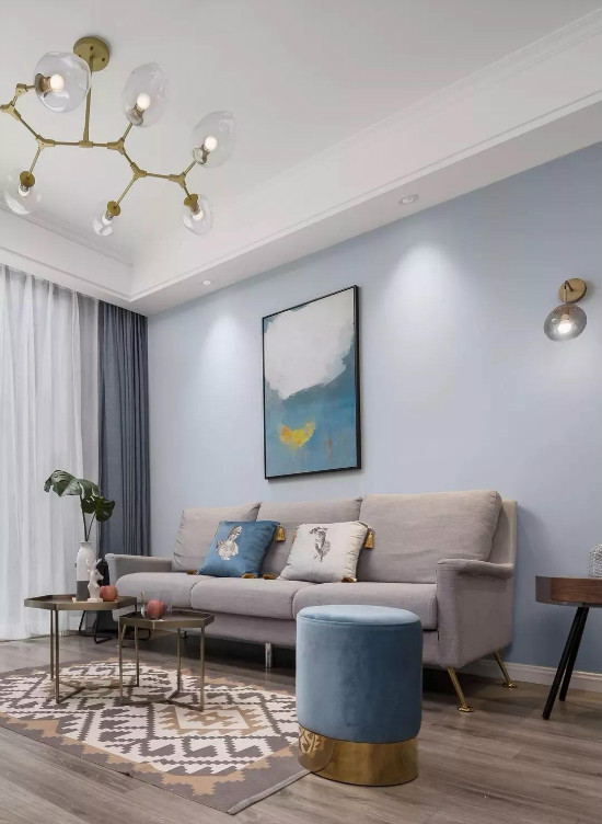 藍天與白云,總是能給人以自然輕松的遐想,在白色天花頂?shù)幕A,當墻面刷墻淡藍色的話,那么整體視覺效果都會是充滿愜意舒適的自然氛圍了。