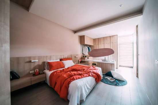 也可以只刷一面墻:比如臥室只在床頭那面墻刷上顏色: