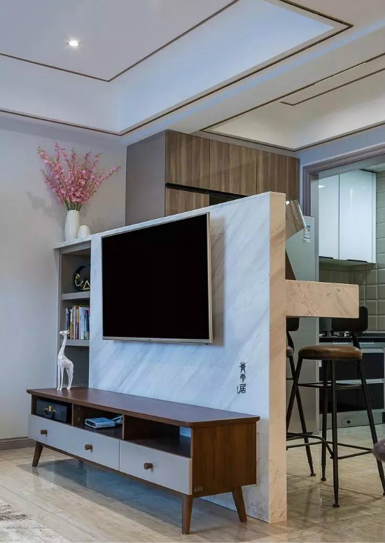 ②電視柜、餐邊柜在隔斷的同時還能做很多收納。