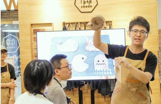 在現(xiàn)場,通過作物老師的講解,用戶可以自己DIY一個木質(zhì)八音盒。在選擇了八音盒的形狀后,用戶需要在八音盒木料上畫出外輪廓,之后還需要打磨、燙畫……,雖然制作過程磕磕絆絆的,但還是給用戶帶來了新奇的體驗感受。